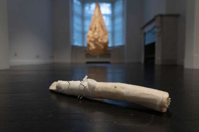 Anna Myszkowiak focuses on the issues of sculpture and space. Her choice of artistic materials often mirror materials found in natural environment which she appropriates to create objects resembling living organisms captured in the process of transformation.